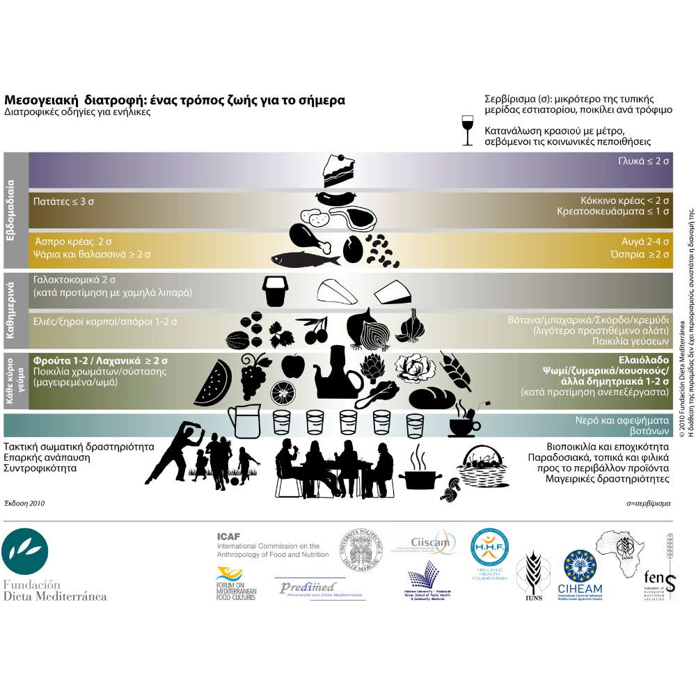 Τα κύρια χαρακτηριστικά της Μεσογειακής διατροφής αποτυπώθηκαν σχηματικά σε μια διατροφική πυραμίδα, γνωστή και ως Πυραμίδα Μεσογειακής Διατροφής.Η πυραμίδα αυτή…