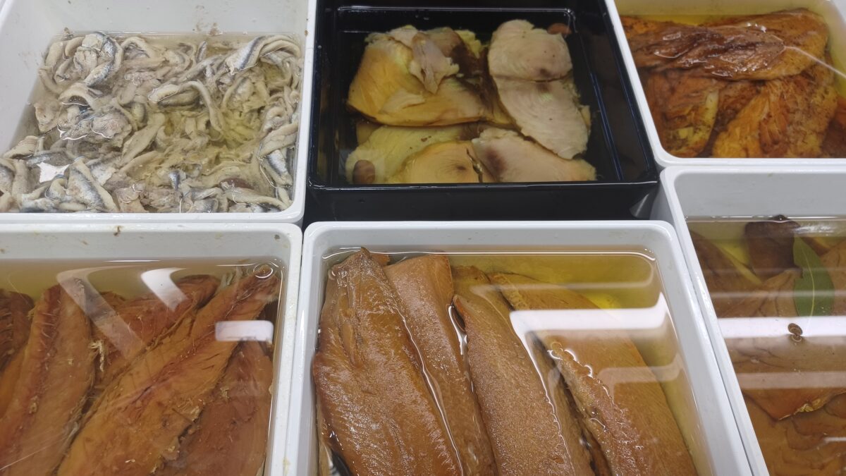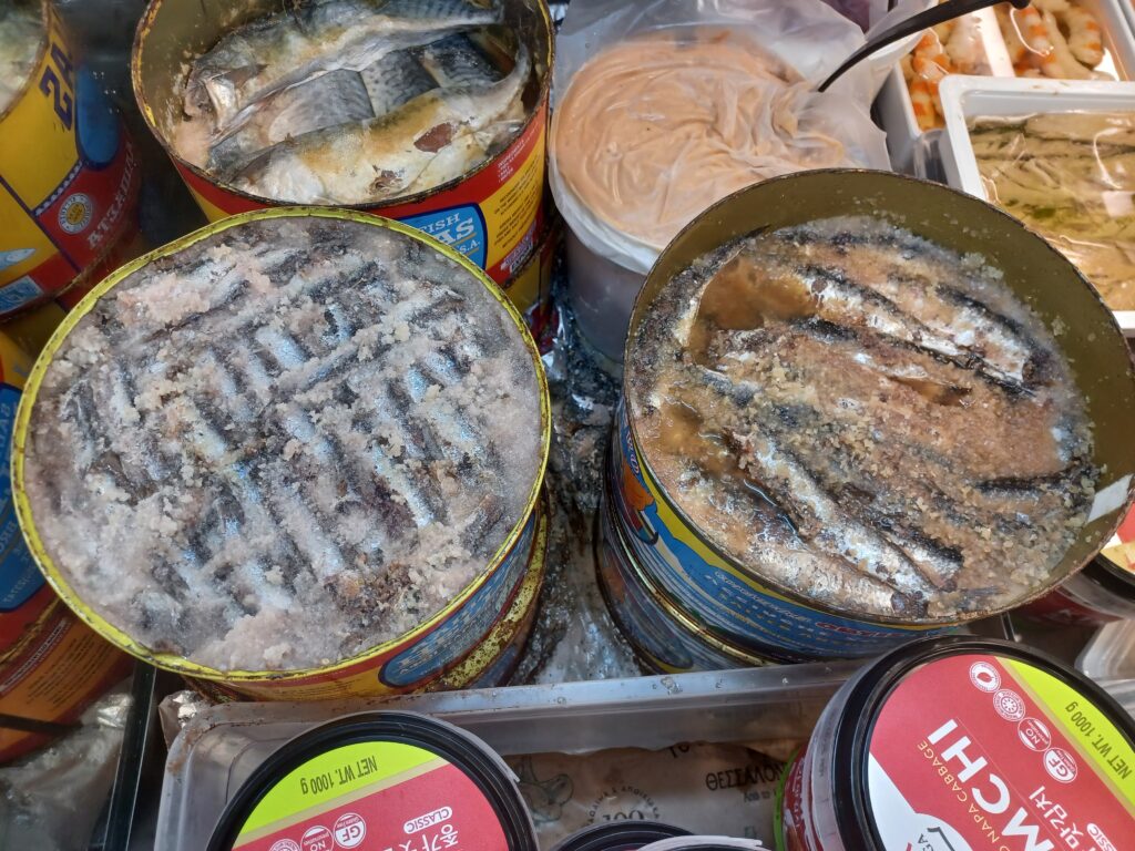 Image 2.1.a. Catches preserved in oil, Thessaloniki 2025. Photograph by S.M. Valamoti