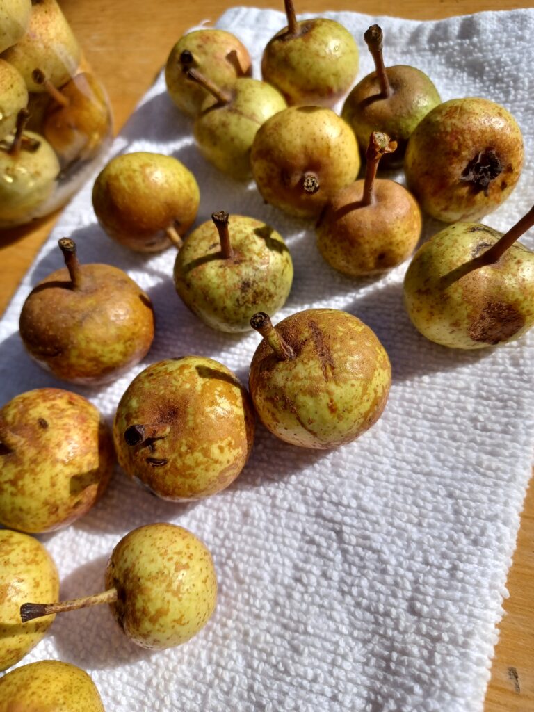 Wild pears collected from a wild pear tree outside the village of Palaiokastro, Chalkidiki, November 2024.
