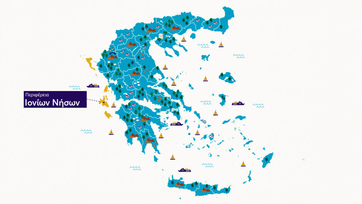 지리적으로, 이오니아 제도 주는 그리스 최서부에 위치해 있으며 헤프타네세(일곱 개의 섬) 군도의 대부분을 품고 있습니다. 이 행정 구역에는 유명한 이오니아 제도의 일곱 섬 중 여섯 곳, 자킨토스, 이타키, 코르푸, 케팔로니아, 레프카다, 팍소이가 포함되어 있으며, 일곱 번째 섬인 키티라는 그리스 중부 행정 구역에 속해 있습니다. 이 섬들은 아스타코스, 이구메니차, 킬리니, 파트라스 항구의 페리 노선과 연결되어 있으며, 코르푸, 케팔로니아, 자킨토스에는 국제공항이 있습니다. 섬 중에는 유일하게 레프카다만 차량으로 방문할 수 있습니다.