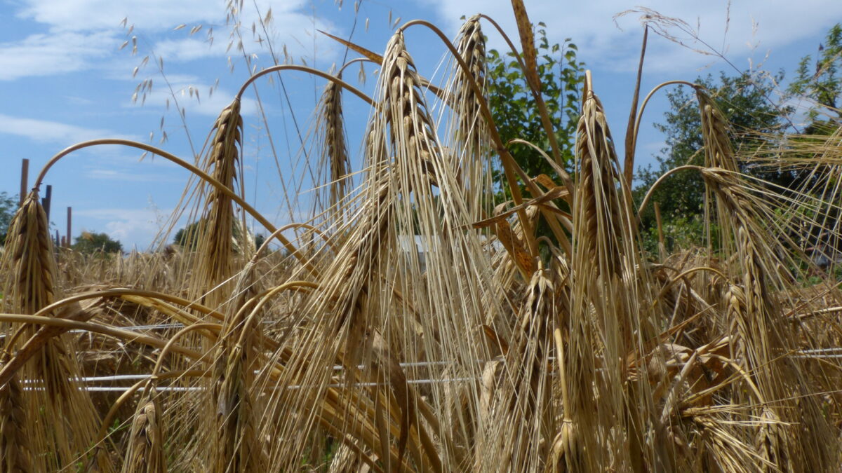 Εικόνα 1. Φυτό κριθαριού στις πειραματικές καλλιέργειες του ΑΙΓΙΛΟΠΑ, Κάτω Λεχώνια Πηλίου, καλοκαίρι 2014. Φωτογραφία Σ.Μ.Βαλαμώτη από το βιβλίο Valamoti,S.M, Fyntikoglou V., Symponis, K. 2022. Food Crops in Ancient Greek Cuisine. Θεσσαλονίκη, University Studio Press.