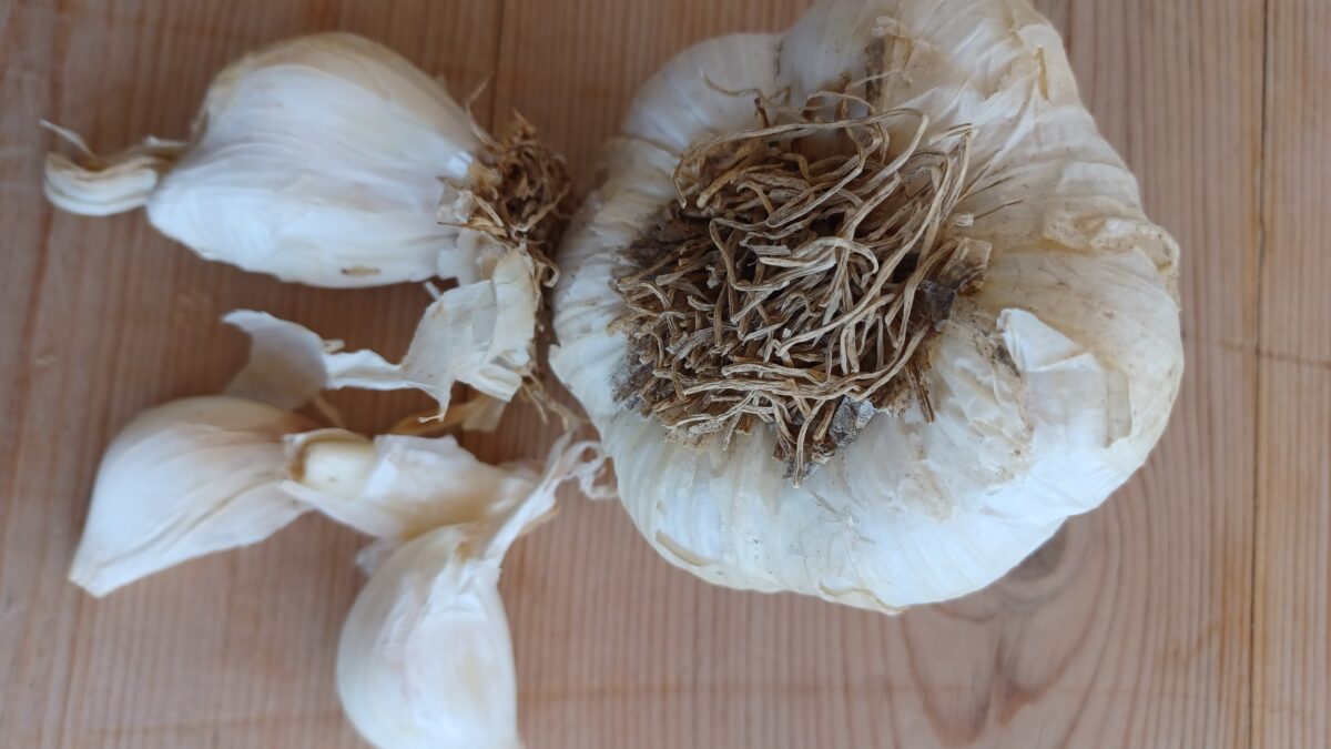 Εικόνα 1. Κεφάλι και σκελίδες σκόρδου, αγορά Καλαμάτας, Αύγουστος 2025. Φωτογραφία Σ.Μ.Βαλαμώτη.