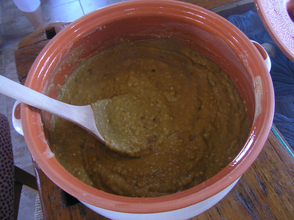 Resim 1: Bütün halinde ve el değirmeninde kırılmış halleriyle afkos tohumları (Fotoğraf S.M.Valamoti, Food Crops in Ancient Greek Cuisine: an archaeobotanical and textual study, Valamoti, Fyntikoglou, Symponis 2022, University Studio Press kitabından).